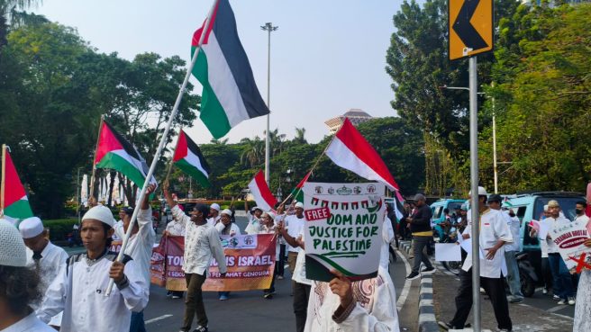 “Kita bangga karena Presiden kita berani bicara di PBB membela Palestina. Tapi kita juga harus dorong pemerintah untuk ambil langkah nyata dan ajak dunia akui kemerdekaan Palestina!” seru Syahril di tengah gemuruh yel-yel “Free Free Palestine!”.