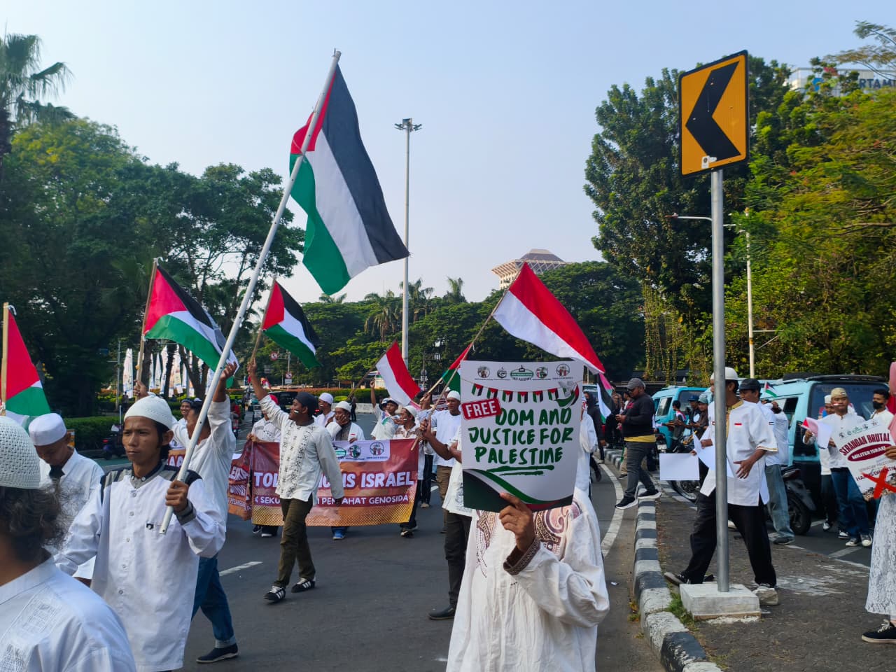 Aksi yang dipimpin oleh Amri L dan Syahril itu membawa satu pesan besar: bebaskan Palestina, hentikan genosida Zionis Israel, serta kecam negara-negara sekutu yang mendukung kekejaman tersebut.