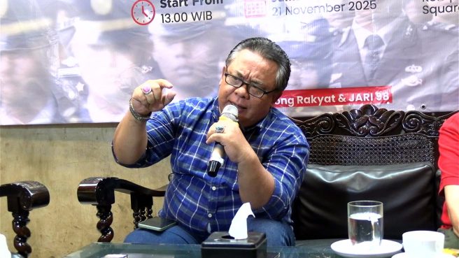 “Negara ini sedang bercanda atau bagaimana?” ujarnya membuka kritik, saat Diskusi Publik bertema “Di Tengah Sorotan Publik: Reformasi Polri & Pertaruhan Kepercayaan Masyarakat di Era Digital”, di Kopi Oey Komplek Blok M Square Jaksel, Jumat, 21 November 2025.