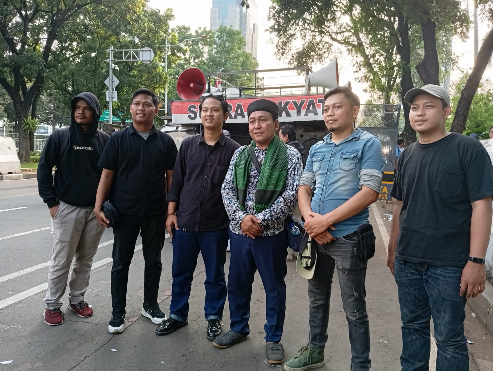 Jakarta — Front Kebangsaan bersama elemen buruh, mahasiswa, dan tokoh masyarakat menggelar aksi damai di kawasan Patung Kuda, Jakarta Pusat, Senin (22/9). Aksi ini mengusung tema “Stop Anarkisme, Ciptakan Situasi Kondusif yang Aman Bagi Masyarakat” dengan tujuan menjaga stabilitas nasional dan memperkuat persatuan bangsa.