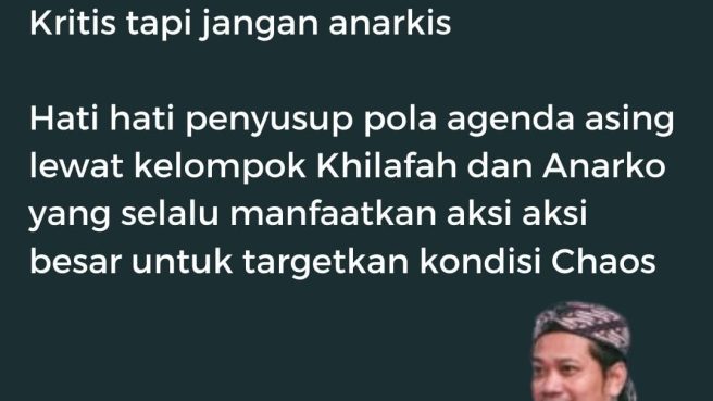 Menurutnya, gerakan Khilafah dan jaringan Anarko kerap hadir dalam aksi-aksi besar, bukan untuk menyuarakan aspirasi rakyat, melainkan memancing kekacauan yang bisa mengarah pada situasi chaos nasional.