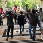 Sekitar pukul 18.50 Wita, situasi semakin tak terkendali. Massa yang menolak membubarkan diri mulai mendorong barikade aparat. Pagar kawat berduri yang sejak siang terpasang di depan kantor bupati roboh didesak ribuan orang.