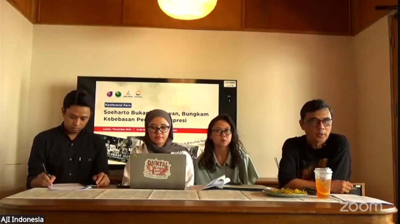Konferensi pers bertema “Soeharto Bukan Pahlawan: Bungkam Kebebasan Pers dan Ekspresi” menegaskan sikap penolakan organisasi masyarakat sipil terhadap rencana pengusulan Soeharto sebagai Pahlawan Nasional.