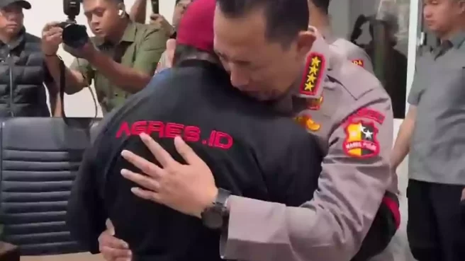 Jakarta – Kapolri Jenderal Listyo Sigit Prabowo bertemu dengan keluarga sopir ojek online (ojol) yang tewas terlindas rantis Brimob di Jakarta. Kapolri tampak memeluk salah satu anggota keluarga korban.