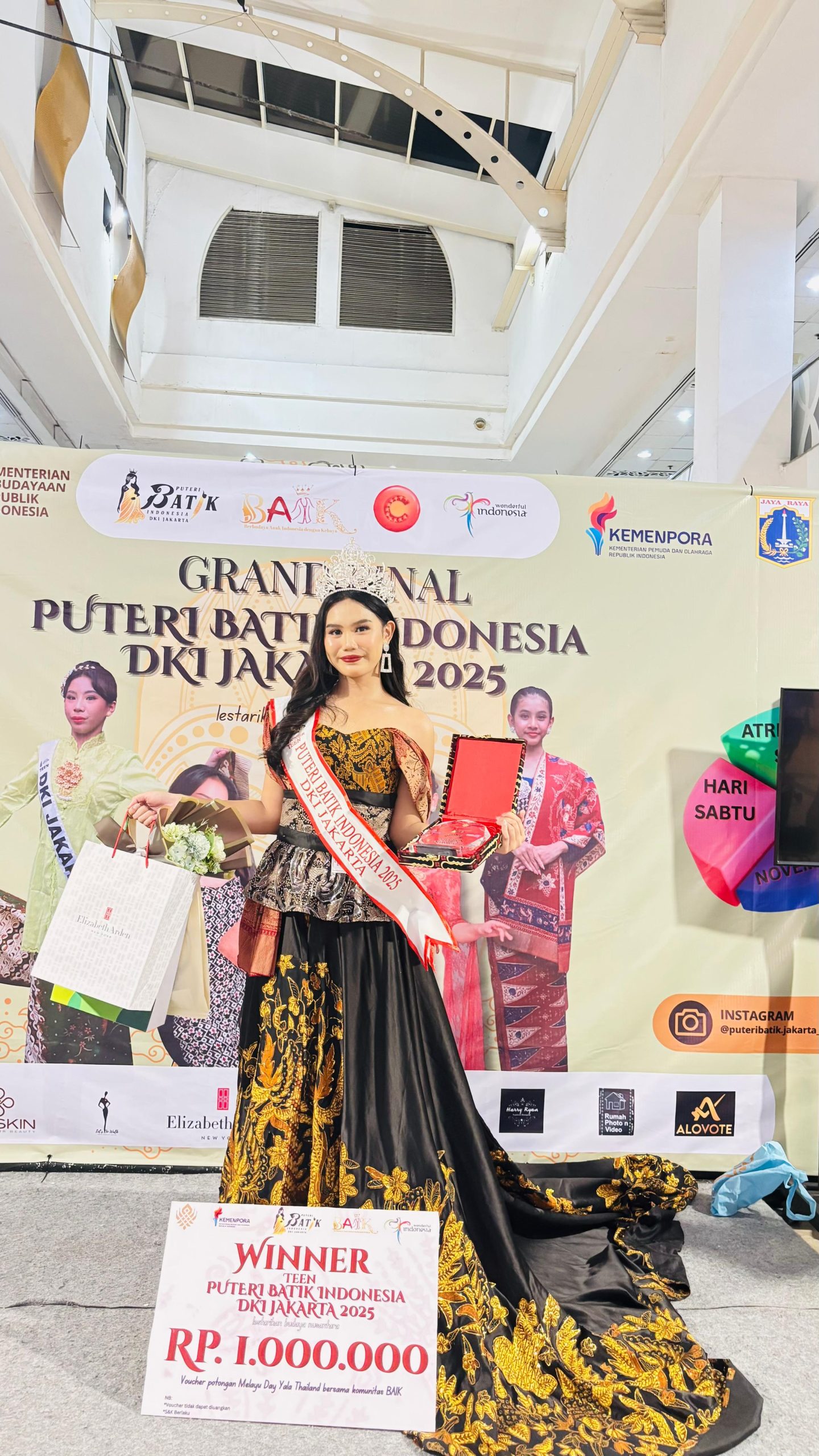 Tarina sendiri berhak menyandang Mahkota kebesaran Putri Batik Remaja DKI Jakarta 2025 menggantikan dari seniornya Intan Huana selaku RU-2 Putri Batik Indonesia 2024.